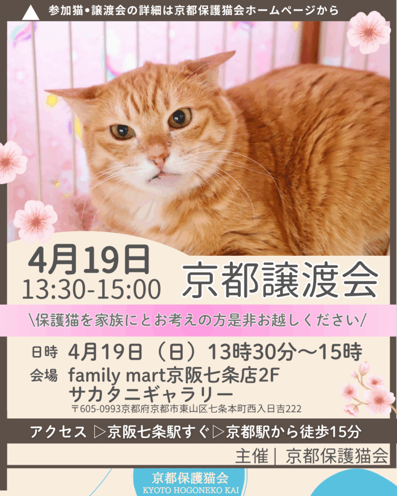 ☑譲渡会の詳細は「京都保護猫会公式ホームページ」をご覧下さい(プロフィール欄のURLからアクセスできます)
