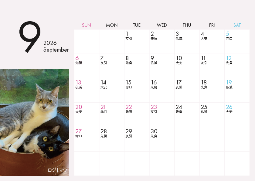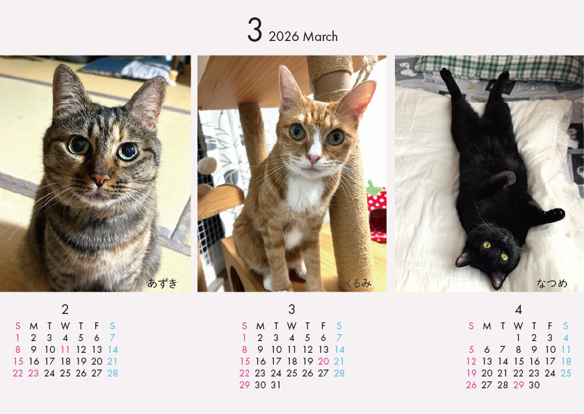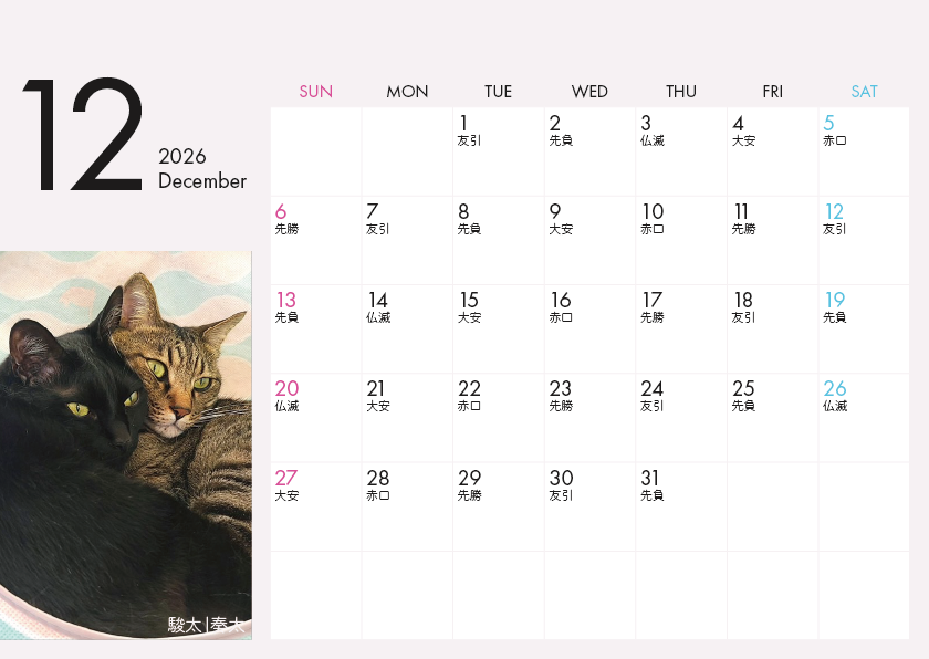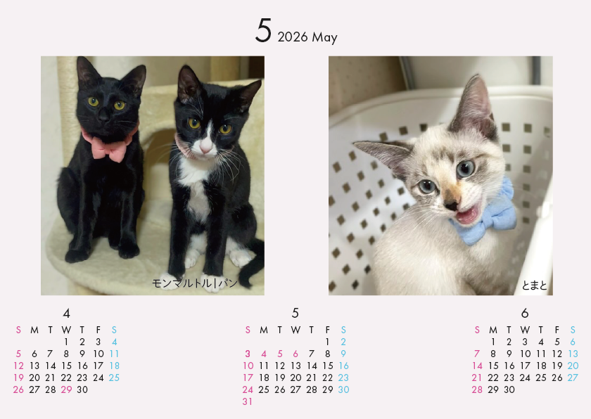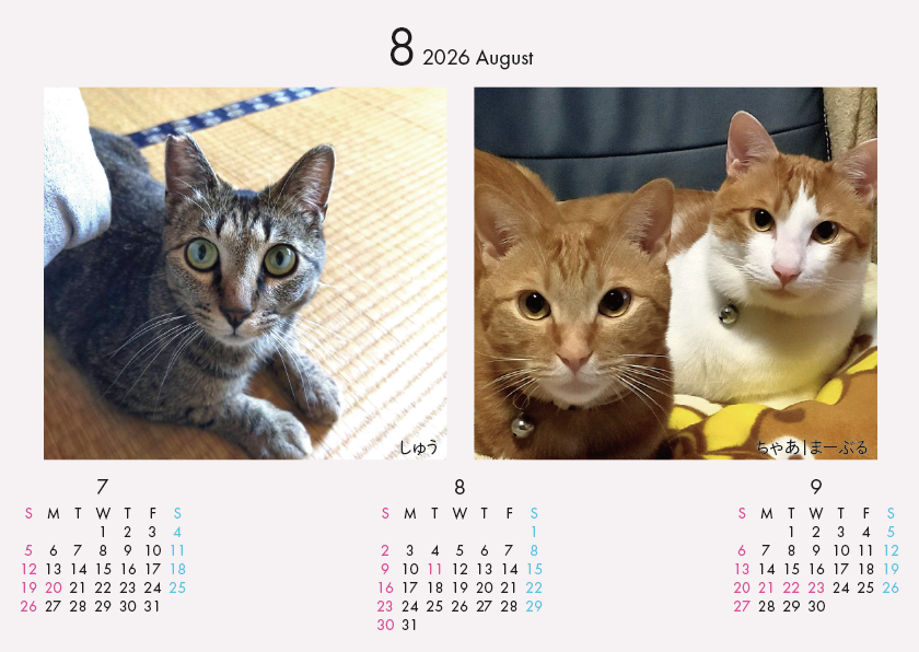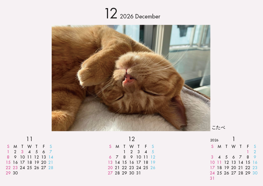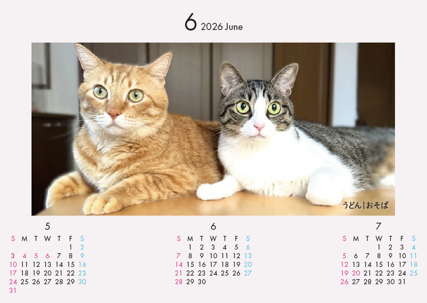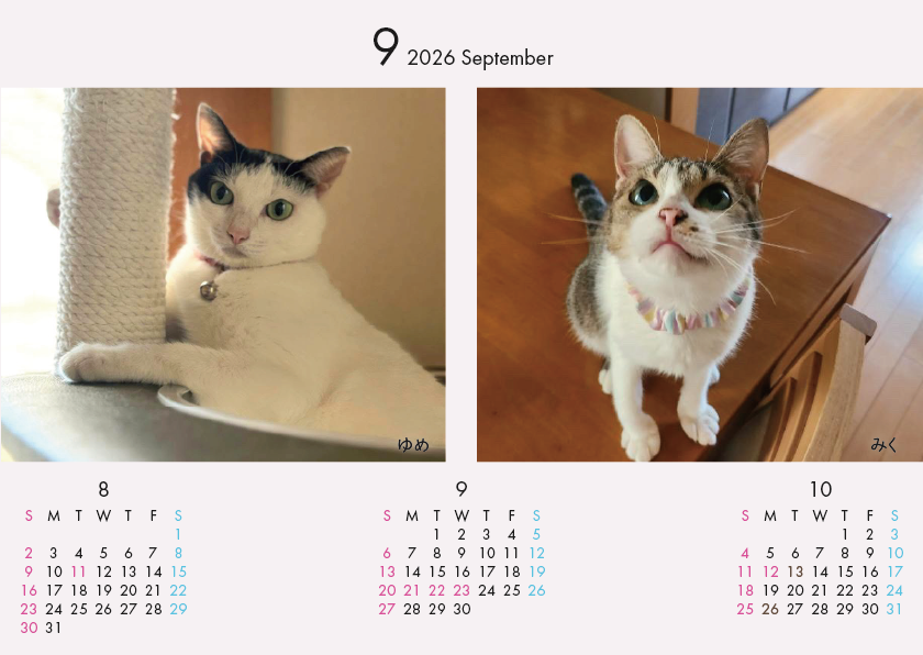 2026年版カレンダーの各ページ 仕上がりイメージです。