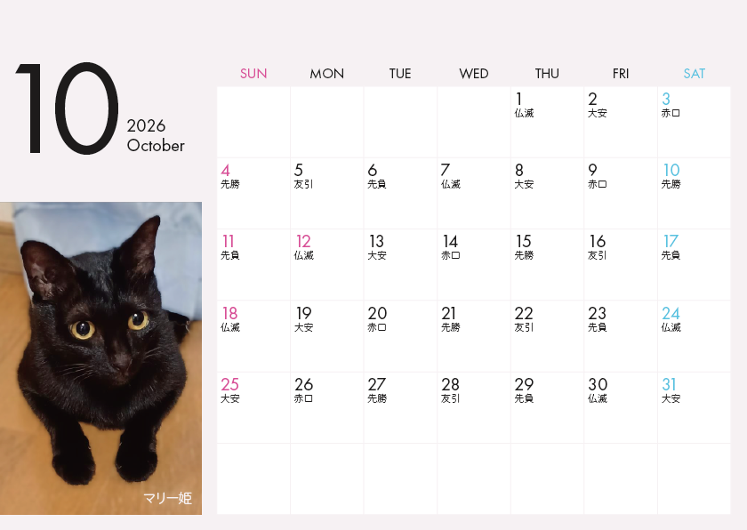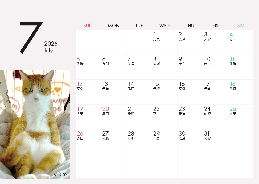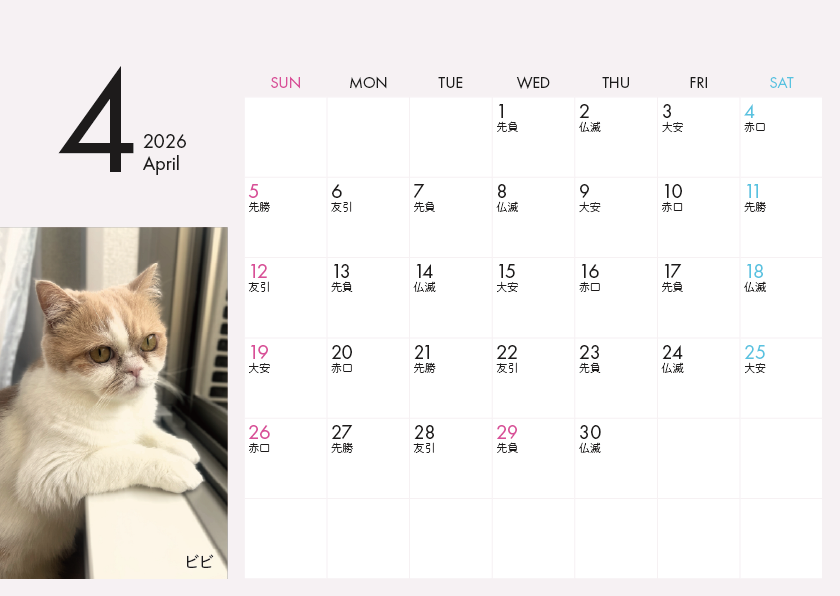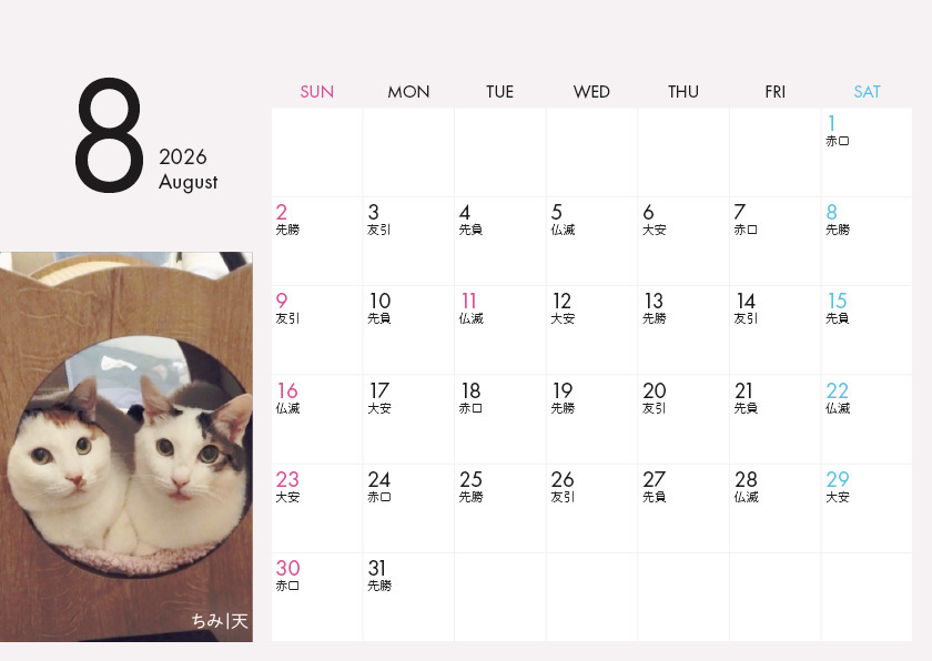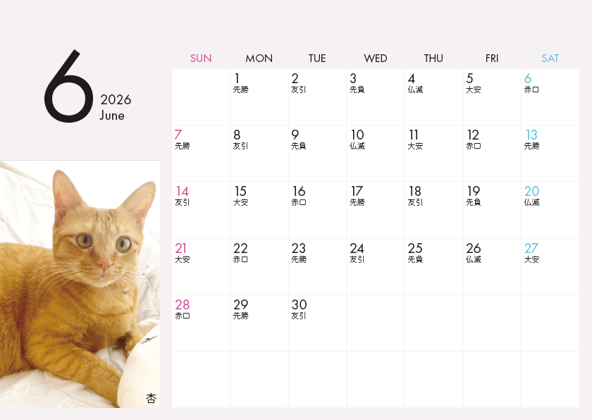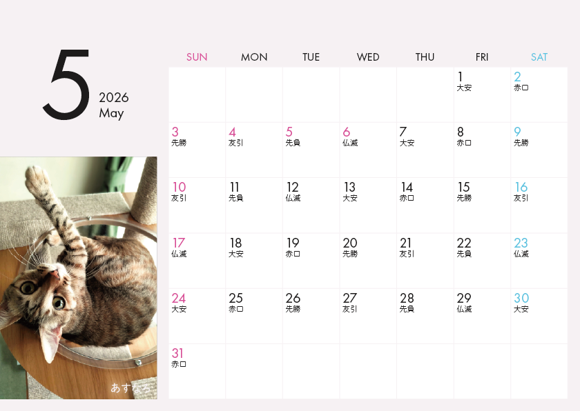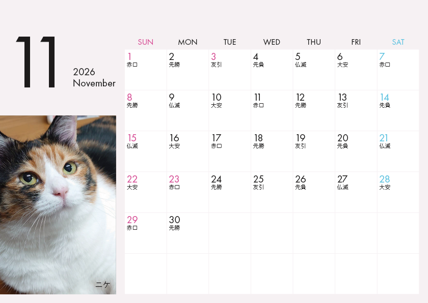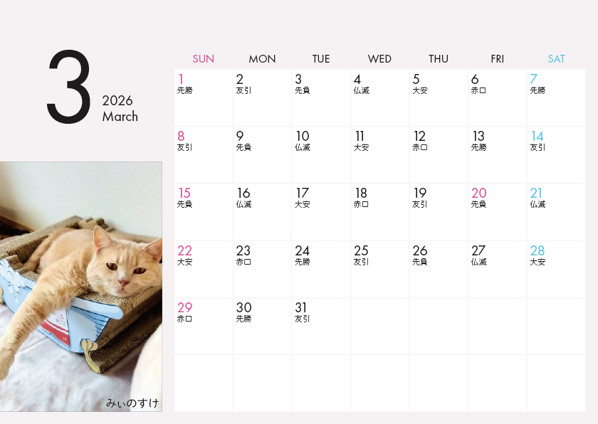 2026年版カレンダーの各ページ 仕上がりイメージです。