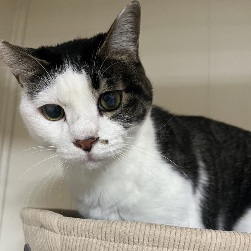 保護前の猫風邪の後遺症により目に白濁がありますが生活に支障なし、今のところ治療の必要もありません