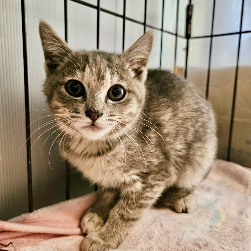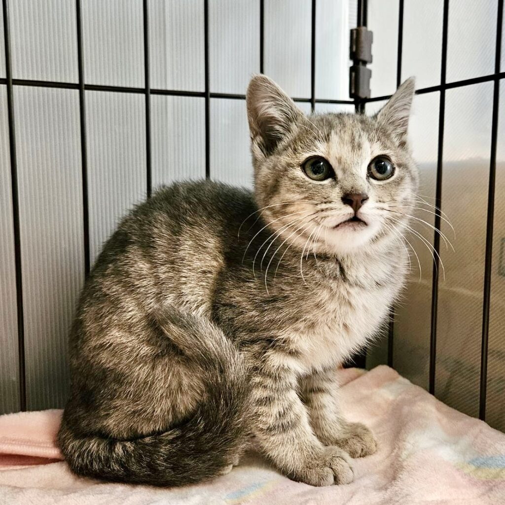 怖がりさんですが子猫なのですぐに慣れてくれると思います グレーの毛並みが綺麗な美少女 富士くん、鷹くんと兄妹です