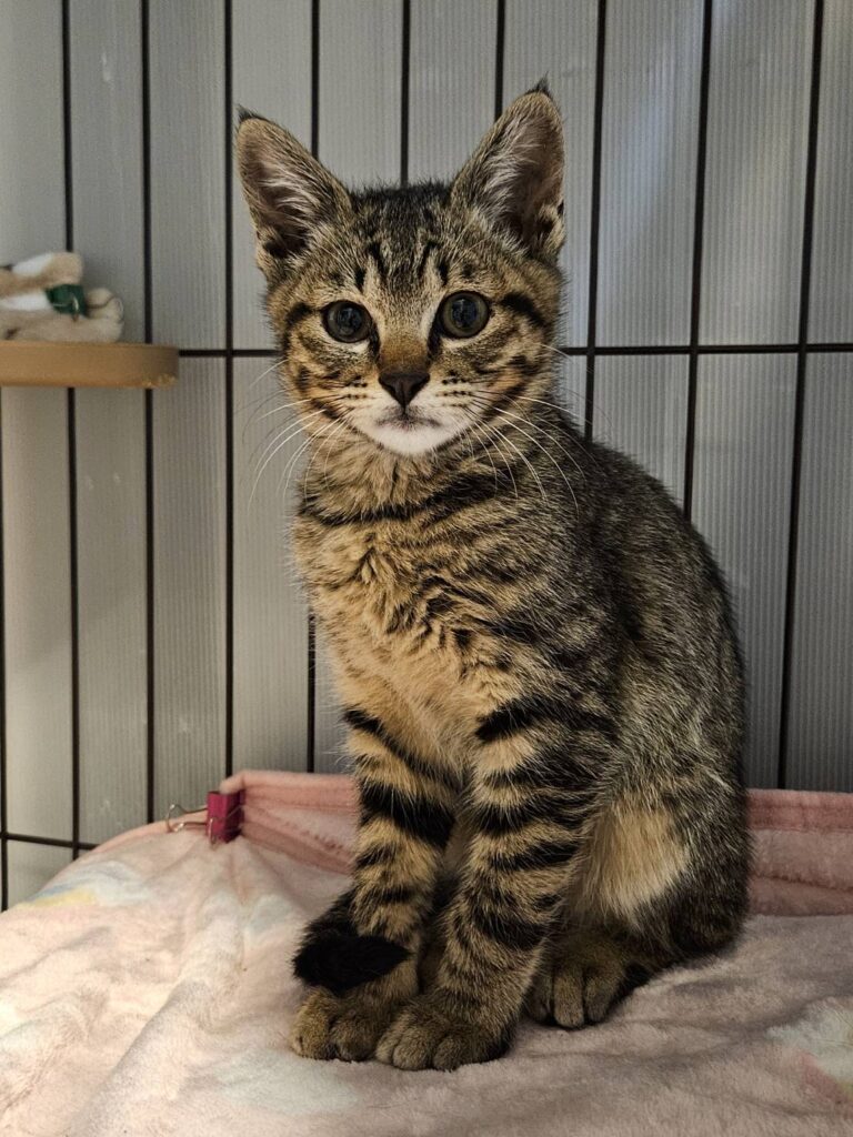 怖がりさんですが子猫なのですぐに慣れてくれると思います おもちゃ大好き まんまるなお顔立ち 鷹くん、なすびちゃんと兄妹です